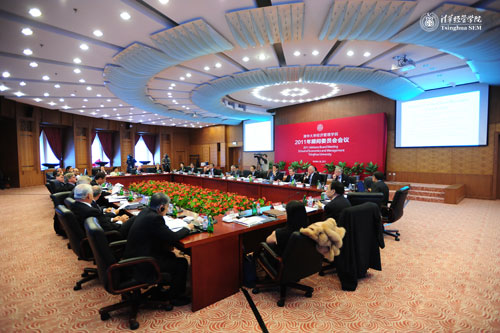 清华经管学院院长钱颖一报告了过去一年的学院发展。委员们高度评价了清华经管学院取得的成绩,并围绕学院的进一步发展进行了热烈的讨论。在总结发言阶段,桑顿教授赞扬了清华经管学院不断提高标准以追求卓越的精神,并希望学院保持良好的发展势头。桑顿教授还特别缅怀了于去年去世的前清华经管学院顾问委员会委员、弗雷曼基金会总裁兼联合创始人霍顿•弗雷曼(Houghton Freeman),弗雷曼先生2010年12月1日在美国逝世,享年89岁。大家将永远记住这位诞生于清华,并对世俱杯官方网站和经管学院都做出了巨大贡献的老朋友。