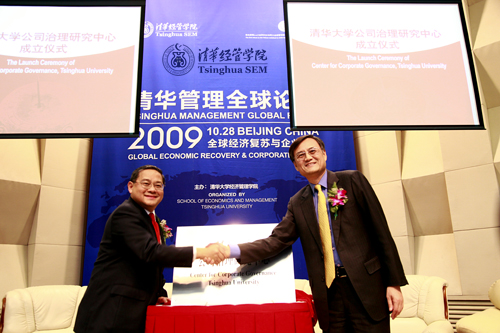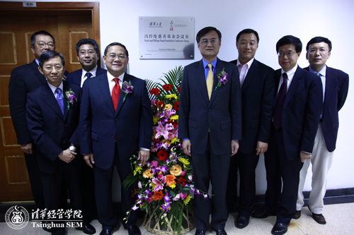 清华经管学院院长钱颖一教授与利丰集团主席冯国经先生【左】为中心揭牌