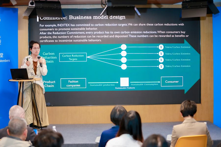 Hack8 Inditex分赛场上,Green Giants、G29、Novus 三支优秀团队依次介绍了各自的创新方案。他们致力于解决分赛场提出的如何加强消费者对可持续时尚产品的认知并激发更绿色的消费行为、目前废纺循环利用的痛点及解决方案、如何打造一个以 “可持续时尚” 为主题的社会传播活动或校园公益项目三个挑战命题,各有独到之处。Green Giants团队旨在打造一个依托AIGC技术的旧衣再设计平台,通过AI技术赋能旧衣再造,支持弱势群体并促进可持续实践。G29团队着力开发一个可持续行为数字权益平台,旨在通过激励机制鼓励消费者的可持续行为,推动时尚产业的绿色转型。Novus团队致力于提供将旧衣改造为非遗艺术品的AI辅助解决方案。