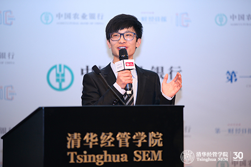 清华经管学院获奖队伍的队长郭超凡(经34班)进行报告展示