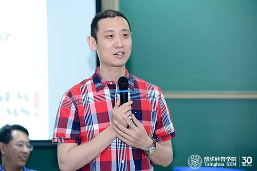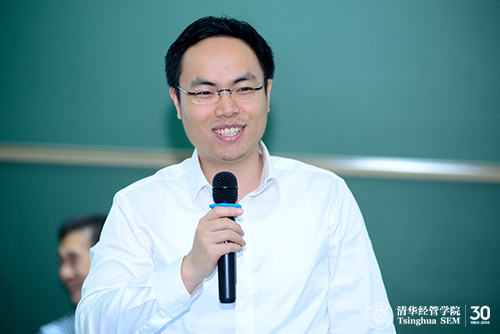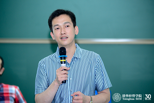 吴占鸣校友说清华经管学院的精神底蕴和文化传承支持他努力地思考、执着前行。在回答主持人的现场提问“是否曾为现在的选择放弃当初的梦想”时,他谈到大学时自己的梦想是朱院长提出的“经世济民,管国理家”,然而走出学校进入职场后发现,要一步一步踏实地走才能逐渐接近这个梦想。吴占鸣校友勉励同学们认真过好每一天,获得了同学们响亮的掌声。