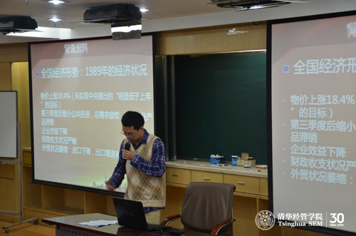 个人展示环节结束后,吕辰(经26)带领在场同学对书中提到的现今经济发展和金融改革中还存在的问题进行了集体讨论。最后,同学们还分组对朱镕基院长的生平事迹进行了情景再现,欢乐的气氛让每一位同学都融入到了活动中,也对老院长曾经的故事有了更真切的体会。