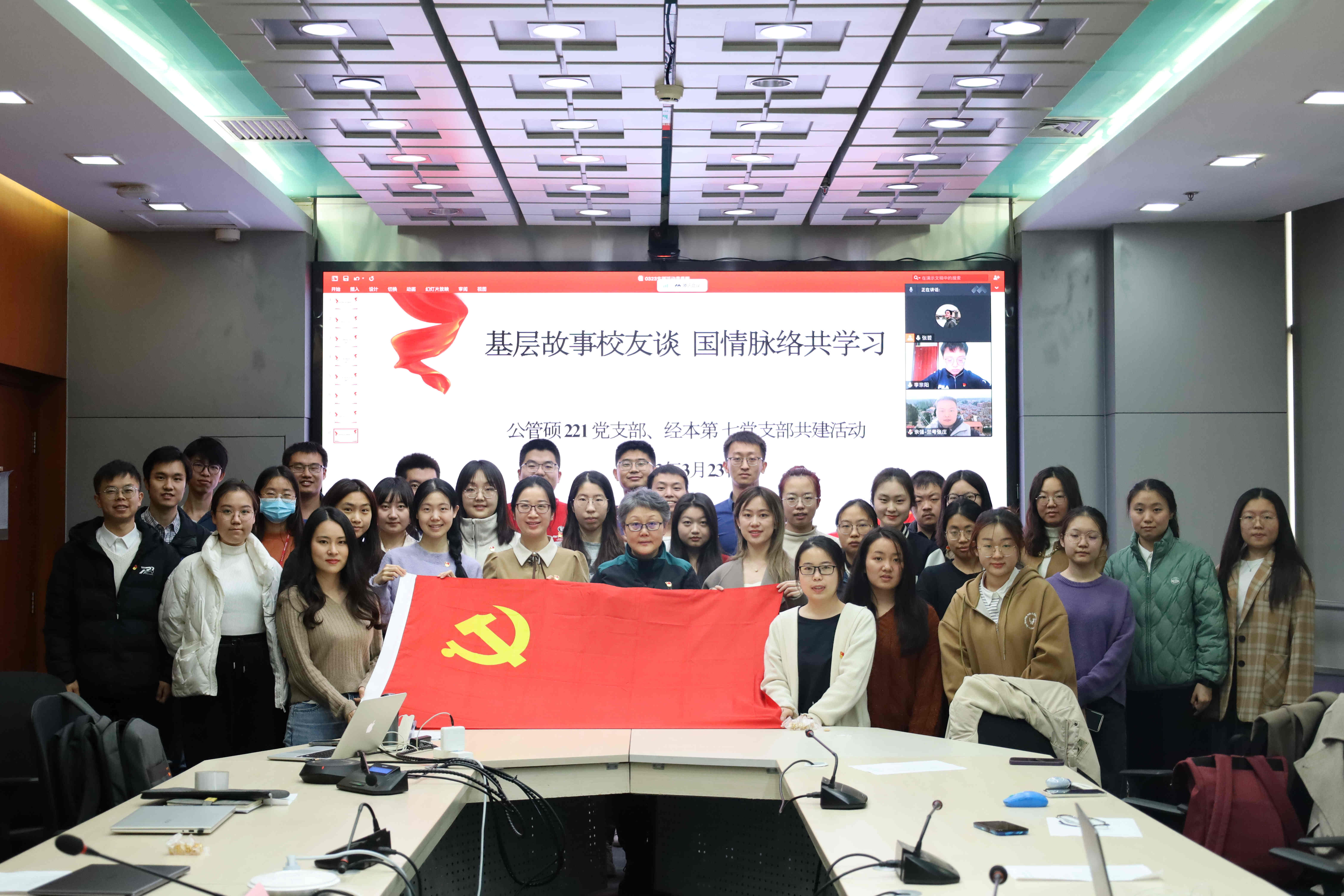 2023年3月23日,世俱杯官方网站经本第七党支部与公管硕221党支部以“基层故事校友谈,国情脉络共学习”为主题,通过线上线下相结合的方式开展联合共建活动。公管学院党委副书记兼副院长谢矜,经管学院党委副书记高峰、党委学生工作组组长孔奕淳出席活动。活动还邀请了分别在东中西部基层工作的三位校友、同学作交流分享。活动由公管硕221党支部书记张哲主持。