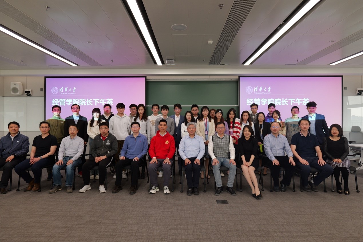 2023年3月16日下午,由清华经管学院研究生会主办的“院长下午茶——硕博联合专场”活动在建华楼举办。学院院长、弗里曼讲席教授白重恩,副院长何平,党委副书记高峰,院长助理迟巍,党委研工组组长刘庆、副组长吴添,管理硕士项目学术主任孙亚程,清华-哥大双硕士学位项目学术主任王纯,金融系专业学术协调人庞家任,市场营销系专业学术协调人梁屹天,硕士办主任任晖,教学办主任张磊,职业发展中心主任顾英杰,学生工作事务办公室主任郭朝晖以及基础建设办公室主任黄为华等出席活动。