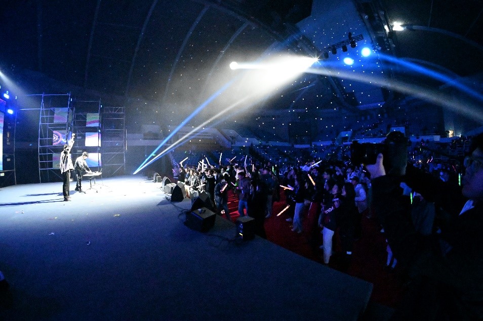 GMBA项目罗杰同学用精湛的唱功展示了两首自己作词作曲的原创电音流行歌曲,配以虚拟世界形象展示,打破了真实世界与虚拟空间的边界;陈子烨和吕牧泉两位同学带来合唱《总有一天》《一个人》,情感真挚,配合默契;《秋冬春夏》歌曲串烧中,来自不同班级的同学们打破班级的边界,共同演绎了表现四季的四首歌曲,让观众深深沉浸在悠扬的歌声和美妙的旋律之中。