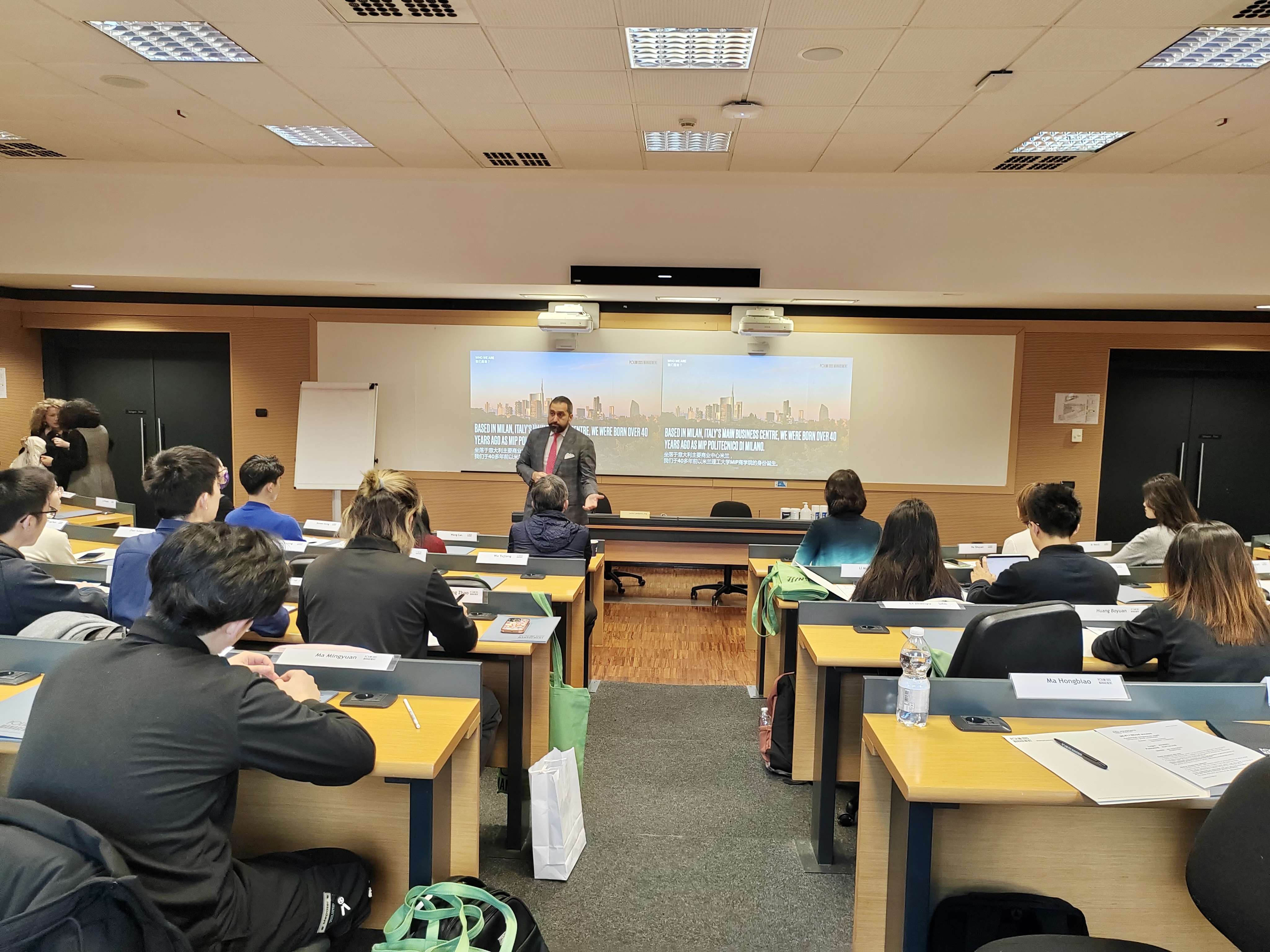 在游学环节,米兰理工大学卢西奥·兰博迪(Lucio Lamberti)教授首先介绍了GSoM管理学院的概况,支队成员了解了米兰理工大学的历史和近些年与中国的交流情况。随后,露西亚·皮西泰洛(Lucia Piscitello)教授和黛博拉·阿戈斯蒂诺(Deborah Agostino)教授分别围绕国家创新能力评估和意大利文化遗产创新进行授课,为支队成员深入了解意大利的科技创新和文化创新提供了新的理论视角。活动最后,卢西奥·兰博迪(Lucio Lamberti)教授为全体支队成员授予游学项目的结业证书。