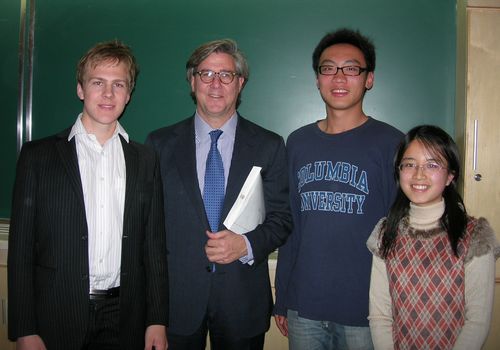 Anders Hammarback (左一) 和约翰•桑顿John Thornton (左二) 在清华经管学院全球领导力课程的教室里