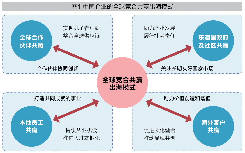 通过竞合共赢出海模式,中国企业既能积极应对日渐激烈的全球竞争,又能与全球各方利益相关者在深度合作中共创共享价值,在共同推动产业优化升级与全球价值链攀升中、在共同增进全世界人民福祉中实现共赢发展。从主动与包括竞争对手在内的各类伙伴合作,到增进与东道国政府的合作,再到注重客户价值共创和本地化人才管理,这些举措都将成为中国企业出海进程中的重要支撑。