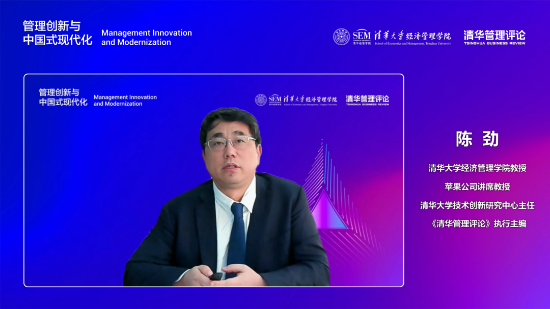 最后,《清华管理评论》执行主编陈劲以《中国式现代化与有意义的管理》为题发表了主题演讲。他表示,有意义的管理是通过系统现代管理学发展谱系,充分吸收经典哲学思想,更是基于中国哲学中的整体观和中华文化中的仁爱精神,充分吸收了我国优秀企业如方太、中国航天、中车、海尔、中铁装备、港珠澳大桥工程等重视人性光辉和意义发挥的最佳管理实践,提出的具有中国特色的全新管理范式。最后陈劲教授总结了有意义的管理的五大贡献:探索数字化时代更好的管理范式、对劳动和工作意义的再思考、持续倡导人性的回归、有助于形成新的企业理论、推进以人民为中心的管理模式。