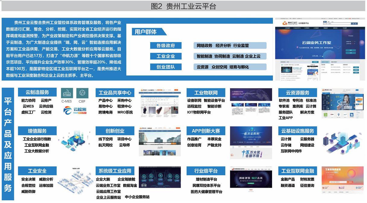 至2022年上半年,“贵州工业云平台”的用户已达17万,打造了“中航力源”等数十个国家和省部级示范项目,使当地企业的生产效率平均提升30%,管理效率提升超20%,降低成本超100万元。如贵州工业品目录,收录了全省范围内工业产品信息,助力全省企业的产品配套,目前已发布产品7326件,涵盖种类994个,汇集企业2987家(见图2)。