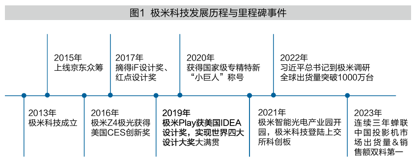 创立于2013年的极米科技(以下简称“极米”)是一家专精特新“小巨人”企业,开创了我国智能投影产业,成为当前投影行业的领军者。极米创始团队秉持从0到1的突破精神,解决了投影仪产品的核心技术难题,盘活了日渐衰落并有技术壁垒的投影仪市场,开创出“无屏电视”这一新兴市场,最终以新技术和新产品在新的赛道上遥遥领先。极米不仅引领中国投影行业崛起,更坚持合作共赢的策略,打造新型光电产业圈,形成涵盖光机产业链的价值生态,为我国企业在国际市场竞争中乘风破浪提供了有益经验。2022年,习近平总书记到极米进行考察,了解企业自主创新和产品研发销售情况,勉励团队“努力提高自主创新能力,加快向制造强国转变”。