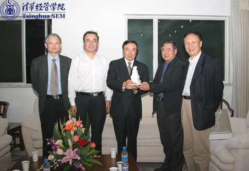 (左起依次为:陈国青副院长、谢维和副校长、马蔚华行长、何建坤副校长、赵纯均教授)