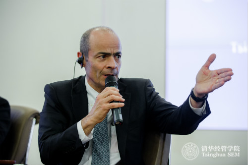 清华经管学院顾问委员、安盛集团董事长德尼·杜威(Denis Duverne)在清华经管学院顾问委员走进课堂的授课中