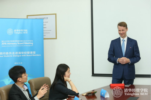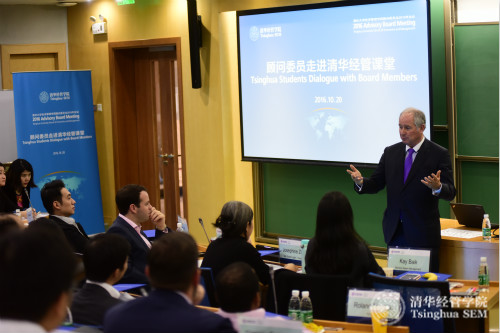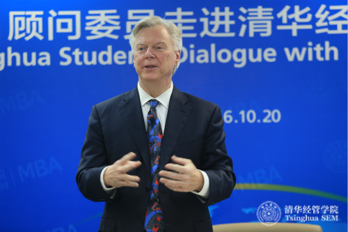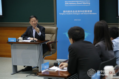 “顾问委员走进清华经管课堂”是顾问委员与学生之间的小班讨论,近距离对话,是使双方都受益的活动:一方面,学生获得难得的机会与顾问委员近距离交流,另一方面,顾问委员也能面对面地了解中国年轻一代最优秀学生的思想动态。学院希望将“顾问委员走进清华经管课堂”打造成一个国际化的平台,让学生有更多机会与世界一流的企业家和投资家交流。(供稿:沟通办责编:刘惠心)