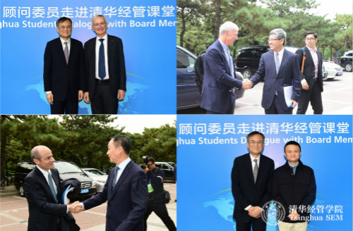当天走进经管课堂的14位顾问委员有:清华经管学院顾问委员会主席、Breyer Capital创始人兼首席执行官吉姆·布雷耶(Jim Breyer),百威英博全球首席执行官薄睿拓(Carlos Brito),安盛集团董事长德尼·杜威(Denis Duverne),盈科拓展集团主席兼行政总裁李泽楷(Richard Li),国有资产监督管理委员会前主任李荣融,智利卢克希奇集团董事长安东尼克·卢克希奇(Andrónico Luksic),阿里巴巴集团执行主席马云(Jack Ma),沃尔玛百货有限公司总裁兼首席执行官董明伦(Doug McMillon),麻省理工学院斯隆管理学院院长大卫·施密特雷恩(David Schmittlein),黑石集团董事长、首席执行官兼联合创始人苏世民(Stephen A. Schwarzman),诺基亚公司董事长、芬安全公司董事长兼创始人李思拓(Risto Siilasmaa),纽约大学斯特恩商学院教授、2001年诺贝尔经济学奖获得者迈克尔·斯宾塞(A. Michael Spence),壳牌集团首席执行官范伯登(Ben van Beurden),溢达集团董事长杨敏德(Marjorie Yang)。