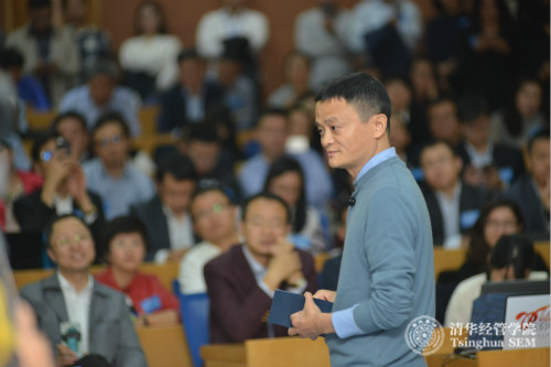 清华经管学院顾问委员、阿里巴巴集团执行主席马云(Jack Ma)在清华经管学院顾问委员走进课堂的授课中