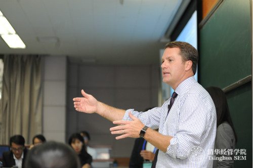 清华经管学院顾问委员、麻省理工学院斯隆管理学院院长大卫·施密特雷恩(David Schmittlein)在清华经管学院顾问委员走进课堂的授课中