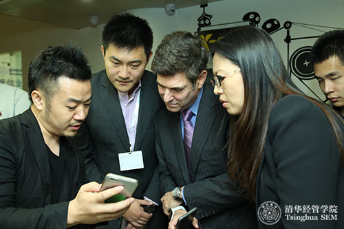布雷耶先生在参观过程中看到了“众趣”、“九天微星”、“青亭网”、“火星人俱乐部”、“玩童”、“腮红娃娃”、“音乐笔记”、“莱杯咖啡”、“态客”、“爱驴”、“睿密无人机”、“航拍中国”等清华经管创业者加速器的优秀创业团队,并与其中的几个团队进行了交流互动。他还亲自体验了来自创业群英荟荟员“青亭网”亭基地孵化的创业企业“捏吧捏吧”的VR产品。针对这些创业团队,布雷耶先生分享了他的看法,他认为创业的重点在于对创业的热情和技术。一个优秀的创业团队应该充满热忱活力、勇于尝试、有不断试验的精神、兼具自信及谦虚的态度。他以对扎克伯格的投资为例,说Facebook在多个社交媒体平台脱颖而出的很重要因素是扎克伯格对自己产品的热忱与自信让布雷耶先生相信他会使Facebook成功。布雷耶先生也很欣赏扎克伯格辨别以及用人的能力,他说,创业项目的成功不仅仅只关乎想法和技术,团队的构成也是重点要素。