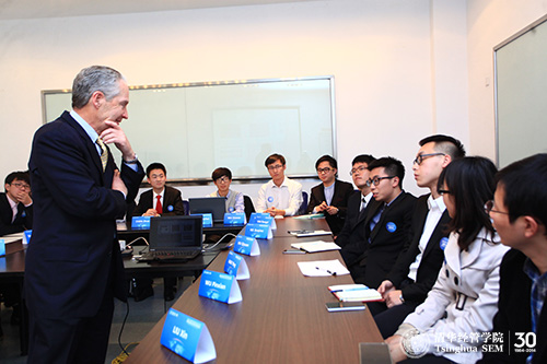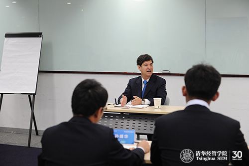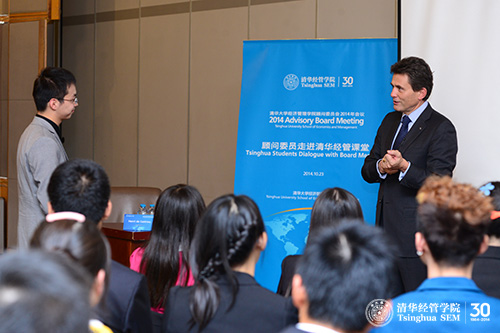 “顾问委员走进清华经管课堂”是顾问委员与学生之间的小班讨论,近距离对话,是使双方都受益的活动:一方面,学生获得难得的机会与顾问委员近距离交流,另一方面,顾问委员也能面对面地了解中国年轻一代最优秀学生的思想动态。学院希望将“顾问委员走进清华经管课堂”打造成一个国际化的平台,让学生有更多机会与世界一流的企业家和投资家交流。(供稿:沟通办)