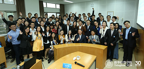 清华经管学院顾问委员、国有资产监督管理委员会前主任李荣融与同学们“给力”合影