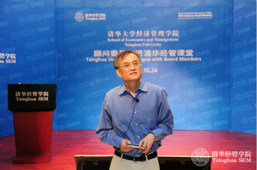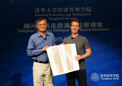 2015年10月24日,清华经管学院顾问委员会委员、Facebook公司创始人兼首席执行官马克•扎克伯格(Mark Zuckerberg)走进清华经管课堂,全程用中文为学生授课。活动由清华经管学院院长钱颖一教授主持。