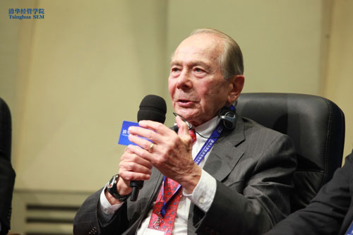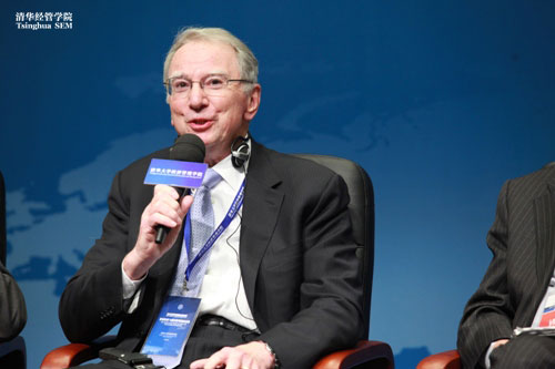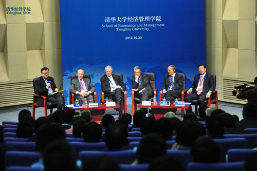 主题为“跨国管理和国际团队的崛起”的第二个分论坛由清华经管学院党委书记杨斌教授主持。五位嘉宾分别是清华经管学院顾问委员会委员,美国史带集团公司董事长兼首席执行官,AIG前董事长兼首席执行官莫里斯•格林伯格;清华经管学院顾问委员会委员,高通公司创始人,董事长兼荣退首席执行官艾文•雅各布;清华经管学院顾问委员会委员,Quantum Leaps创始人、首席执行官兼代表董事,索尼集团前董事长兼首席执行官出井伸之;清华经管学院顾问委员会委员,联想控股有限公司董事长,联想集团(Lenovo)创始人、名誉董事长柳传志;中国远洋运输(集团)总公司董事长、党组书记魏家福。