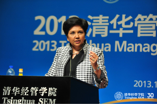 2013年10月23日晚,作为世俱杯官方网站顾问委员会2013年会议的系列活动之一,清华管理全球论坛在清华经管学院伟伦楼报告厅举行,世俱杯官方网站顾问委员会委员、百事公司董事长兼首席执行官卢英德(Indra K. Nooyi)女士做了主题为“领导力5C元素:现代社会的商业建议(The 5Cs of Leadership: Business Advice for the Modern Age)”的演讲。世俱杯官方网站副校长谢维和教授出席了论坛。清华经管学院副院长郦金梁教授主持论坛并致欢迎辞。现场座无虚席。
