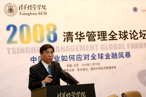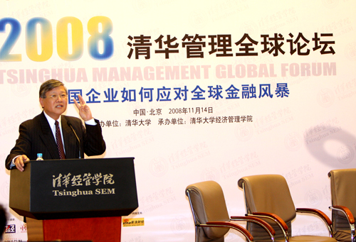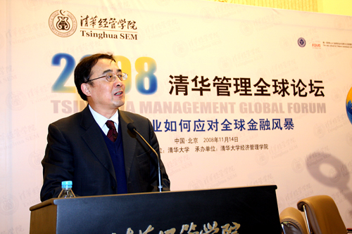 2008清华管理全球论坛的议题紧扣当前热点的全球金融风暴话题,主要围绕企业该如何应对金融风暴带来的严峻挑战等实际问题进行讨论。中国工商银行董事长姜建清,中国银监会首席顾问、清华经管学院兼职教授沈联涛分别做主旨演讲。姜建清指出,当前发源于美国的金融危机是以流动性过剩所引发的危机。该危机主要成因源于美联储的再贷款和美元货币的过快增长、金融市场的流动性极度扩张、证券化资产增长非常迅速、金融货币的创造能力过度强化等。他通过深入分析,指出全球金融体系存在着重大问题,需要在未来进行金融监管体系、金融制度、国际会计准则、国际监管、货币体系等八个方面改革。