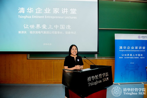 2016年8月28日下午,哈尔滨电气集团公司董事长、党委书记斯泽夫(MBA1993)重返母校清华经管学院,做客清华企业家讲堂,讲述“让世界爱上中国造”。清华经管学院党委书记高建教授为演讲致辞,副院长钱小军教授主持活动。现场座无虚席。