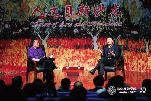 伴随着开场魔术师的精彩表演,为本场魔界论坛拉开了序幕,也奠定了全场神秘而有趣的基调。“魔术师是代表一种造梦者和圆梦者”,傅琰东开场的一段演讲就为魔术师进行了准确的定位,从梦想入手,傅琰东和“睿智的”何平开始了一场幽默而精彩的思维碰撞。