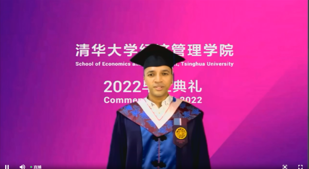我是Sharaf,来自印度。非常荣幸能够有机会代表EMBA国际班TIEMBA参加今天的毕业典礼。此时此刻,当我们接近这段旅程的终点时,我不禁感叹时光飞逝。在这里,请允许我与在座各位分享我的收获。