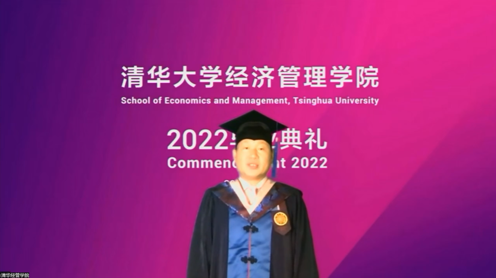 近110年前,梁启超先生以《君子》为题在清华作了演讲,天行健,君子以自强不息;地势坤,君子以厚德载物。天地广大,任君遨游。今天,我们即将再次启程,问道谦谦君子。愿我们都不负清华人的职责与使命,心怀“国之大者”,把握大势,敢于担当,善于作为。万语千言,与诸君共勉。