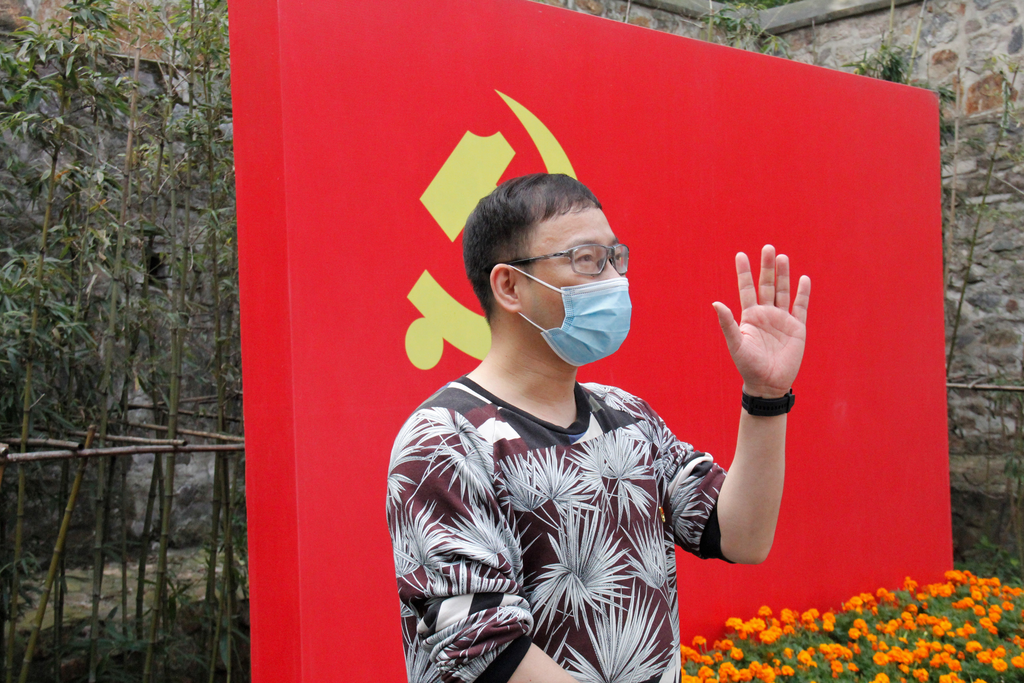 两校师生在讲解员的带领下参观双清别墅,学习体会老一辈革命家筚路蓝缕、励精图治的革命精神。随后,在鲜红的党旗下,同学们认真聆听老师们讲授党课。