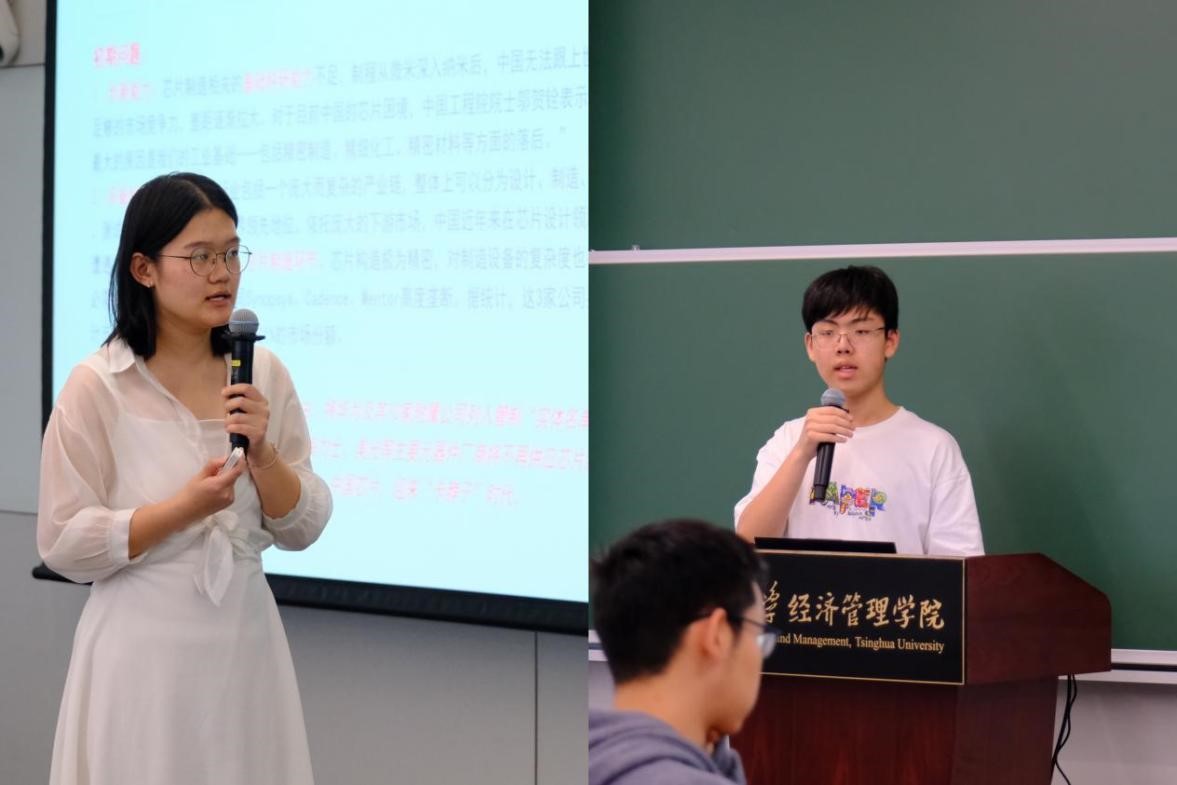 理论学习环节中,经25班郭孝垚、赵怡杉就经济安全相关话题进行分享。郭孝垚指出当前中国产业链面临的安全问题,强调要提升产业链自主性和完整性,应对“ 卡脖子”风险,强化整体抗风险水平。赵怡杉以芯片、光伏产业为例,分享了产业安全问题和解决对策。两位同学表示,要在认识产业链安全重要性的基础上,结合航院、经管学科特色,扎实钻研科学理论,服务实业科技。