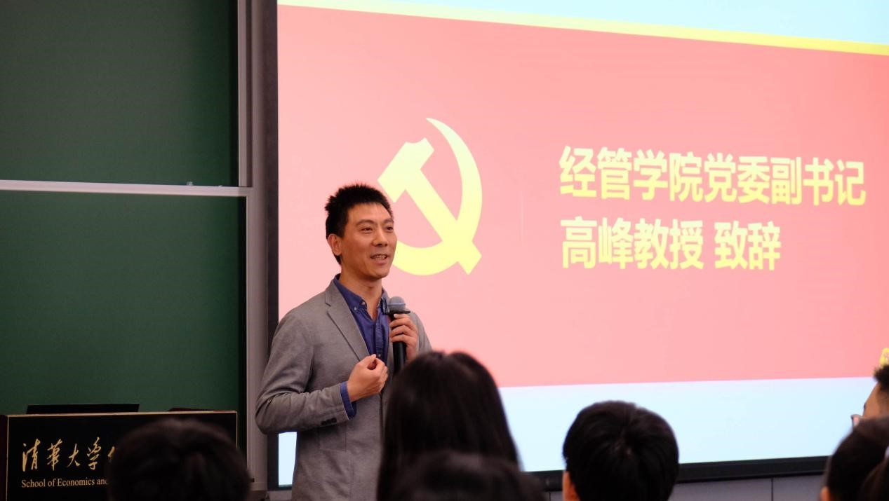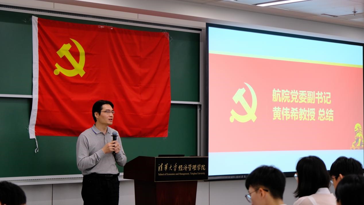 经管学院党委副书记高峰、航院党委副书记黄伟希、经管学院市场营销系教工党支部书记宋学宝、航院工程热物理研究所教工党支部书记王沫然、经管学院党委学生工作组组长孔奕淳、航院党委学生工作组组长姜辰等参加活动。