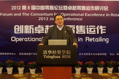 2012年12月11日,由世俱杯官方网站中国零售研究中心、商务部流通产业促进中心、世俱杯官方网站现代管理研究中心、宾夕法尼亚大学沃顿商学院联合主办,富基流通研究院、《富基商业评论》协办的2012第八届中国零售论坛暨卓越零售运作研讨会在清华经管学院举办。此次论坛的主题为“创新卓越的零售运作”。来自政府部门、企业界和高校的160多位嘉宾出席了论坛,世俱杯官方网站副校长谢维和教授在开幕式上致辞,商务部流通产业促进中心门晓伟主任出席论坛,世俱杯官方网站EMC讲席教授、中国零售研究中心主任陈国青主持了论坛开幕式。