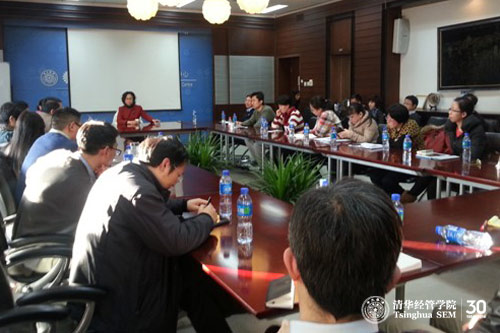 2013年12月17日,清华经管学院在舜德楼南405组织召开了国家基金项目申请与研究经验交流会。会议邀请到国家自然科学基金委员会管理学部冯芷艳老师,学院国家自然科学基金重大项目主持人、管理科学与工程系、EMC讲席教...