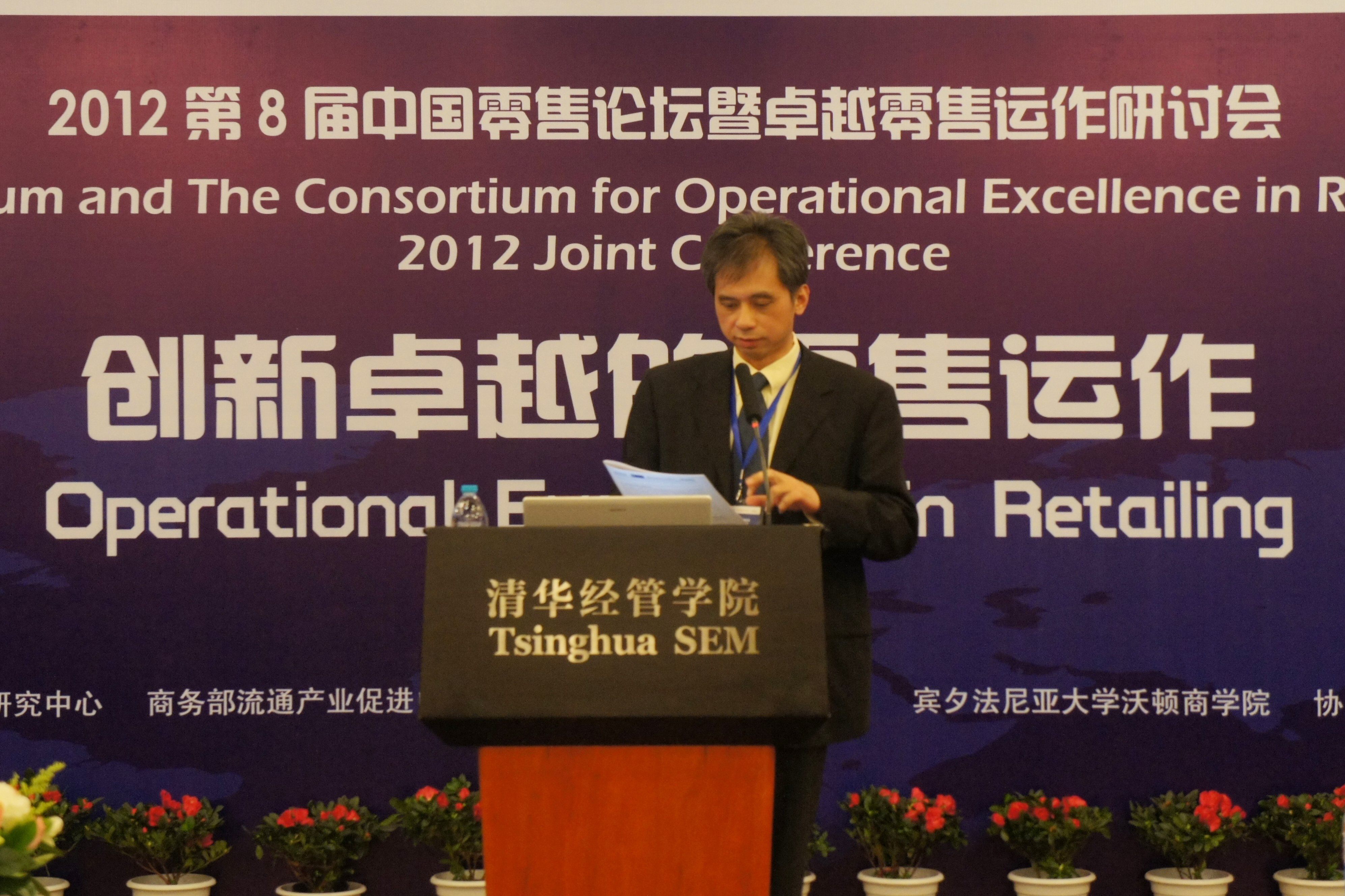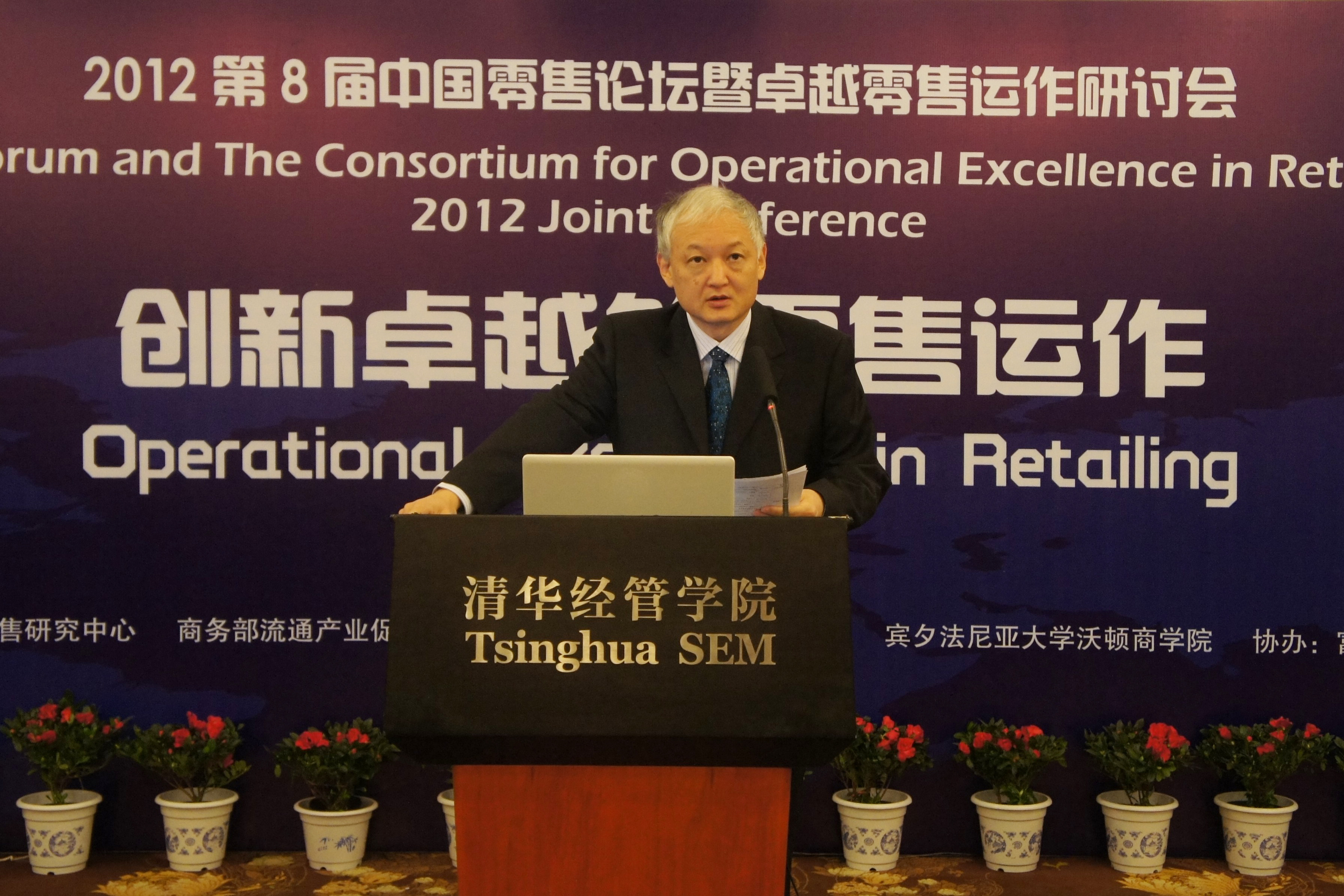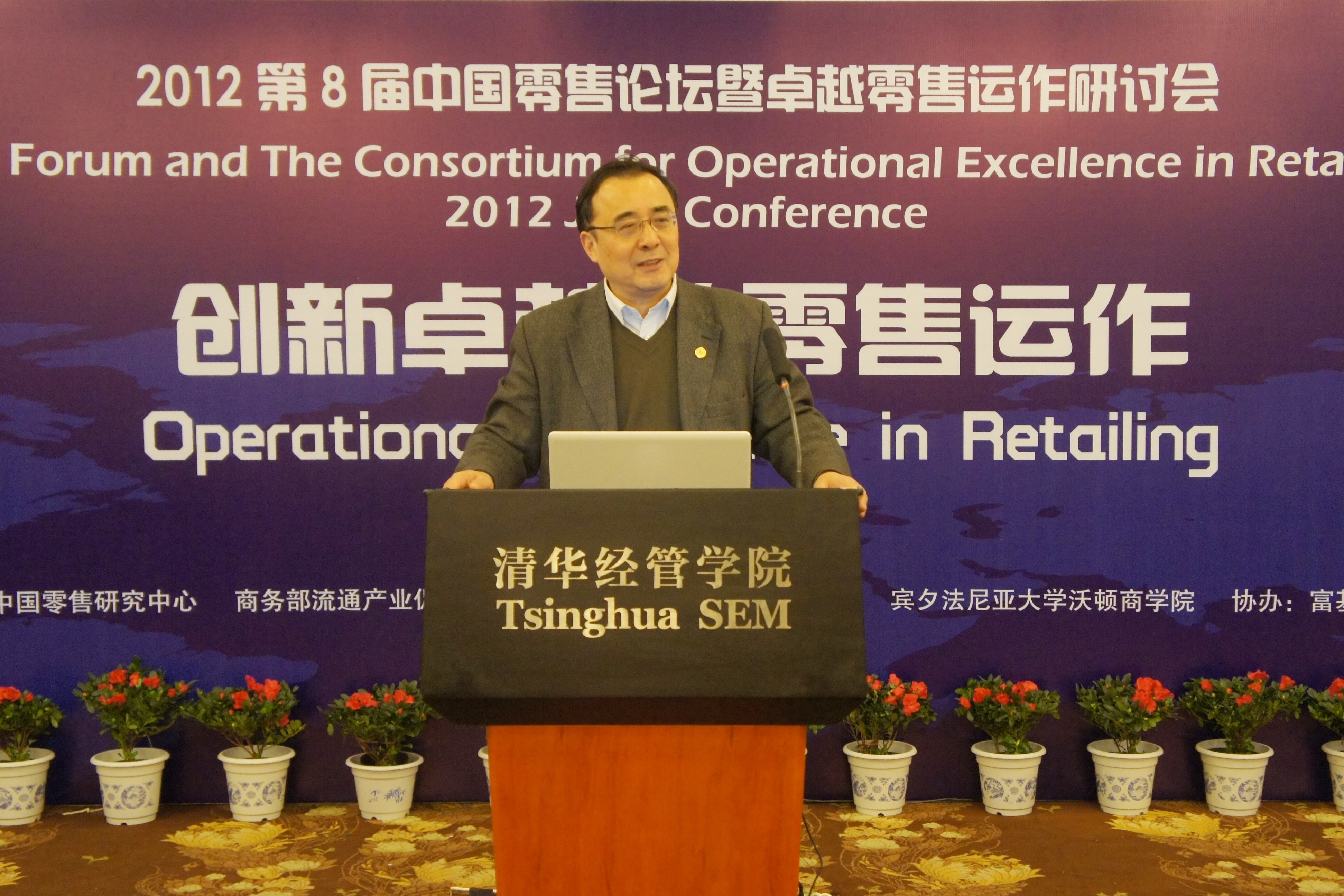2012年12月11日,由世俱杯官方网站中国零售研究中心、商务部流通产业促进中心、世俱杯官方网站现代管理研究中心、宾夕法尼亚大学沃顿商学院联合主办,富基流通研究院、《富基商业评论》协办的2012第八届中国零售论坛暨卓越零售运作研讨会在清华经管学院举办。此次论坛的主题为“创新卓越的零售运作”。来自政府部门、企业界和高校的160多位嘉宾出席了论坛,世俱杯官方网站副校长谢维和教授在开幕式上致辞,我系陈国青教授主持了论坛开幕式。