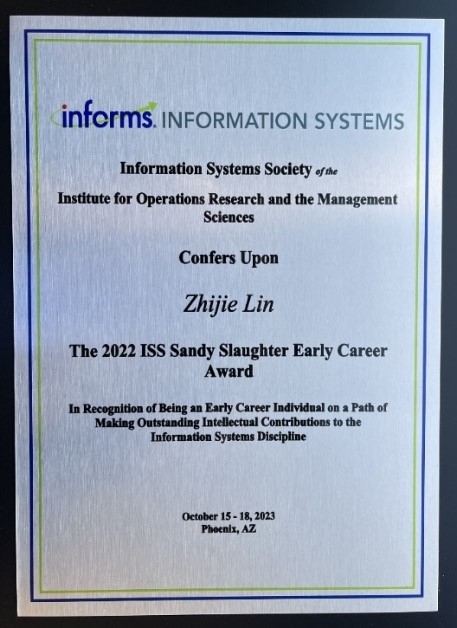 林志杰荣获美国运筹学与管理科学学会信息系统协会(INFORMS ISS)青年学者奖