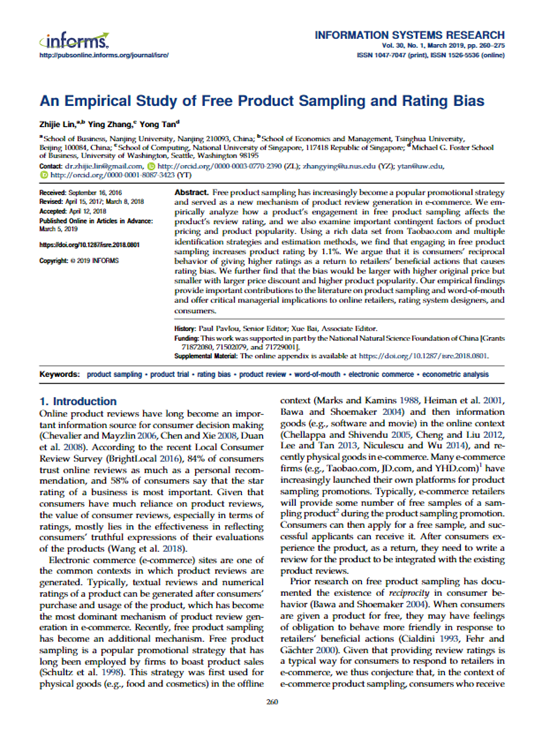 论文“An Empirical Study of Free Product Sampling and Rating Bias”