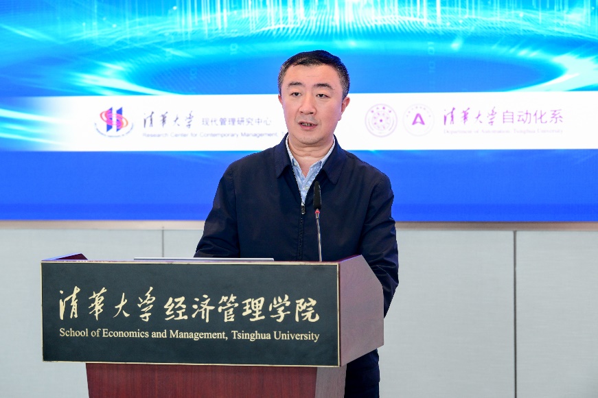 杨斌在致辞中表示,随着以数字智能技术为代表的第四次科技革命、产业革命不断向纵深发展,数智技术愈发成为驱动人类社会思维方式、组织架构和运作模式发生根本性变革、全方位重塑的引领力量。本届论坛聚焦政产学研协同推进的数智赋能高质量发展,期待与会的各界专家进行思想碰撞和交流研讨,为数智赋能高质量发展贡献智慧和力量。希望现代管理研究中心和自动化系能够继续围绕“数智赋能高质量发展”这个主题,将论坛打造成本领域共享、交流、合作的高水平学术平台。