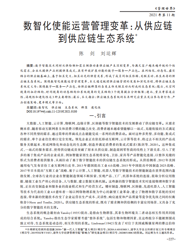 Digitized Empowerment of Operational Management Transformation: From Supply Chain to Supply Chain Ecosystem by CHEN Jian and LIU Yunhui