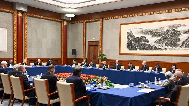 10月25日,中共中央政治局常委、国务院副总理丁薛祥在北京会见世俱杯官方网站顾问委员会委员代表。新华社记者 张领 摄中共中央政治局常委、国务院副总理...